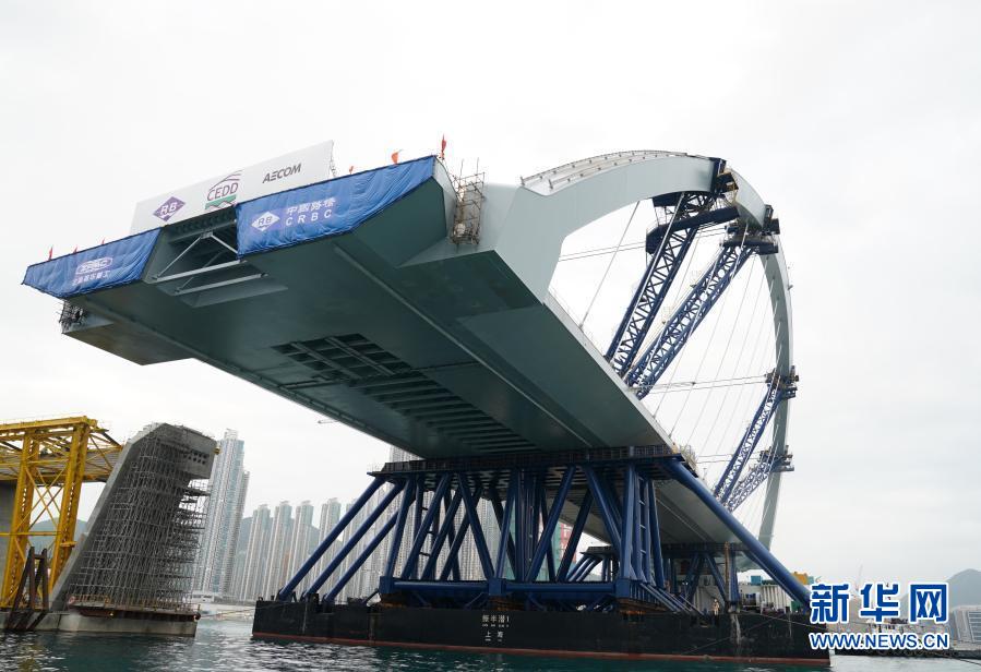 2月26日,將軍澳跨灣大橋主橋順利完成浮托安裝,浮托安裝總重達(dá)12000噸,總長(zhǎng)214米,創(chuàng)造國(guó)內(nèi)單體拱橋整體安裝的新紀(jì)錄。