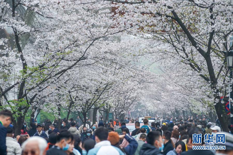 近日,南京街頭盛開的櫻花燦若云霞,吸引眾多市民游客外出賞花游玩,享受春日美景。