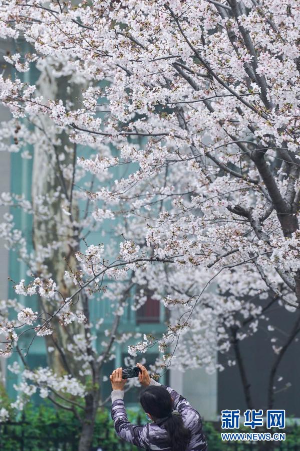 近日,南京街頭盛開(kāi)的櫻花燦若云霞,吸引眾多市民游客外出賞花游玩,享受春日美景。