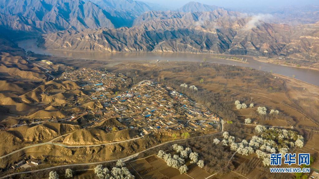 這是位于寧夏中衛(wèi)市黃河黑山峽河段的南長(zhǎng)灘村(4月5日攝,無人機(jī)照片)。