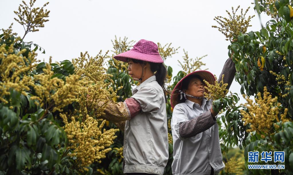 4月5日,廣西欽州市久隆鎮(zhèn)青草村村民在進(jìn)行果樹(shù)管理。
