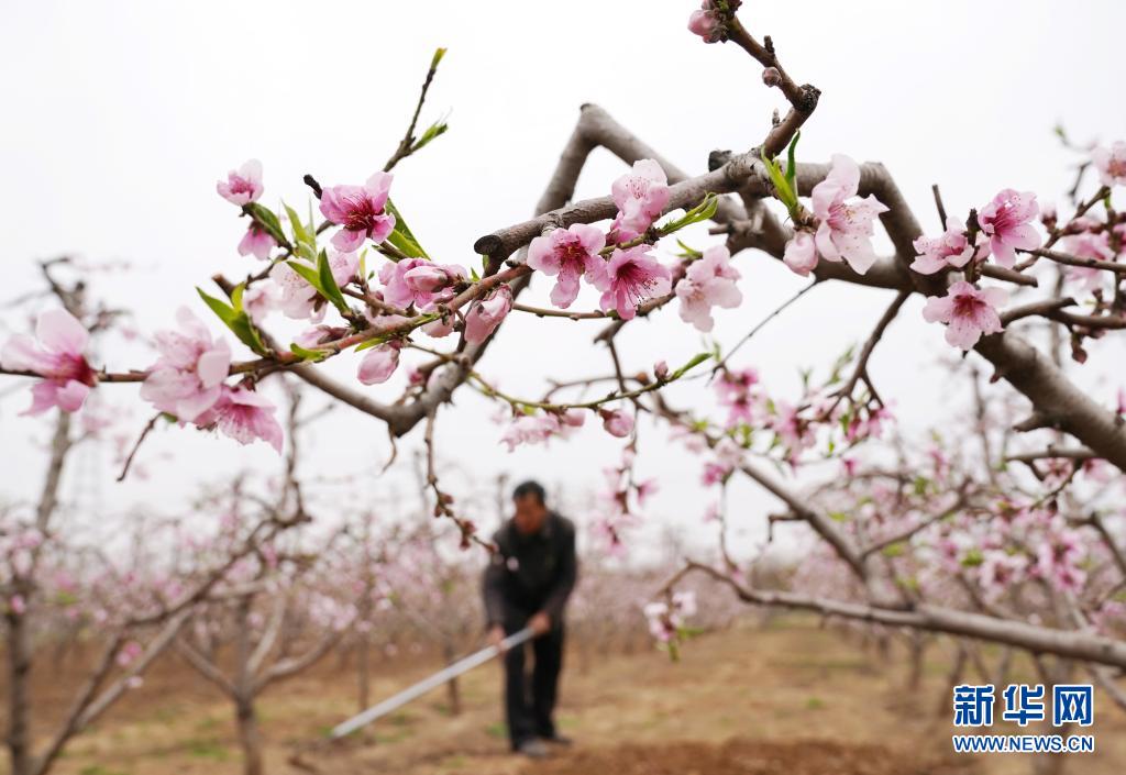 4月5日,河北省順平縣河口鄉(xiāng)大李各莊村的農(nóng)民在桃園內(nèi)除草。