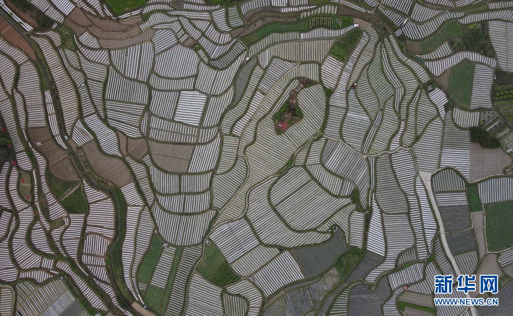 4月5日在貴州省遵義市余慶縣白泥鎮(zhèn)團(tuán)結(jié)村烏楊大壩現(xiàn)代農(nóng)業(yè)蔬菜種植示范區(qū)拍攝的田園風(fēng)光(無(wú)人機(jī)照片)。