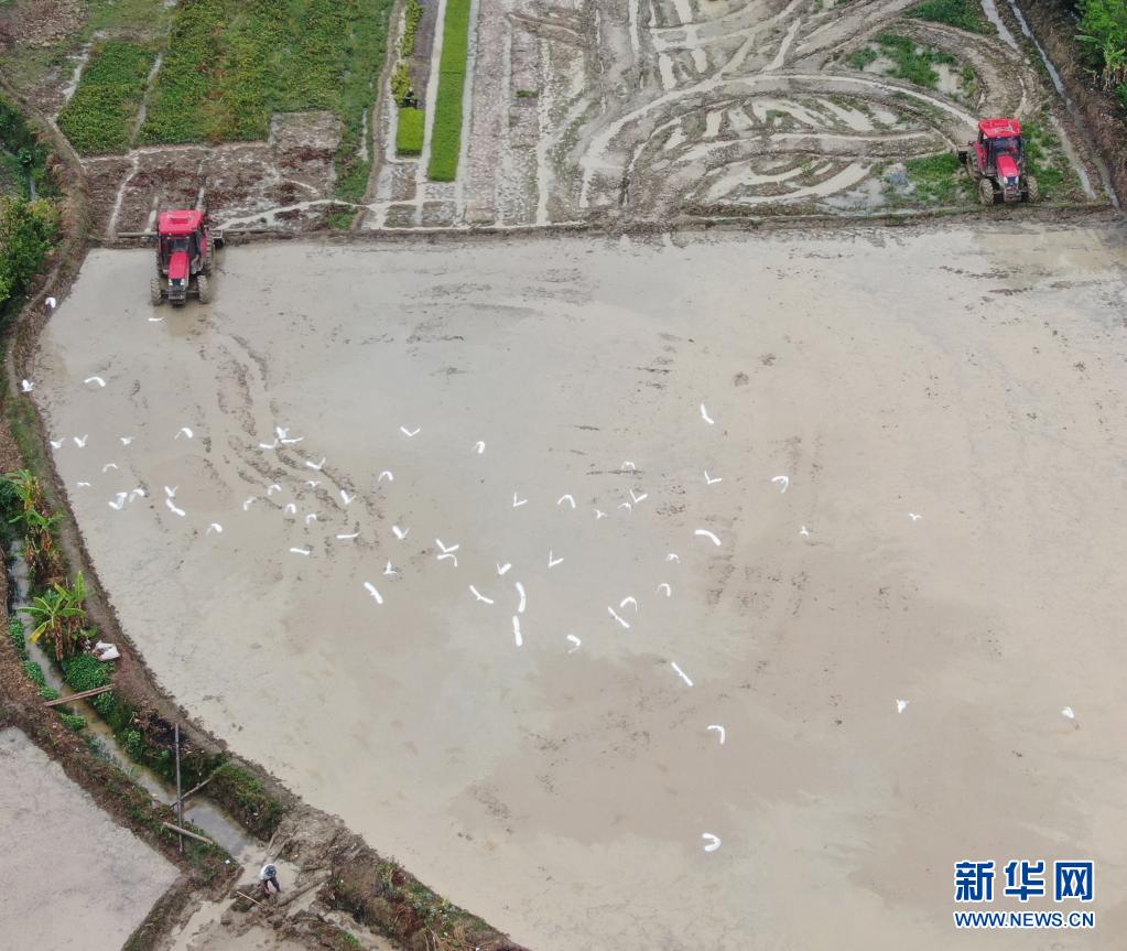 4月5日,云南西雙版納傣族自治州勐??h勐遮鎮(zhèn)曼么勒村的農(nóng)民駕駛拖拉機(jī)耕田(無(wú)人機(jī)照片) 。