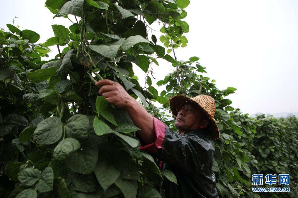 4月5日,云南省紅河哈尼族彝族自治州建水縣臨安鎮(zhèn)莊子河村委會(huì)東山寨村的農(nóng)民在采摘四季豆。