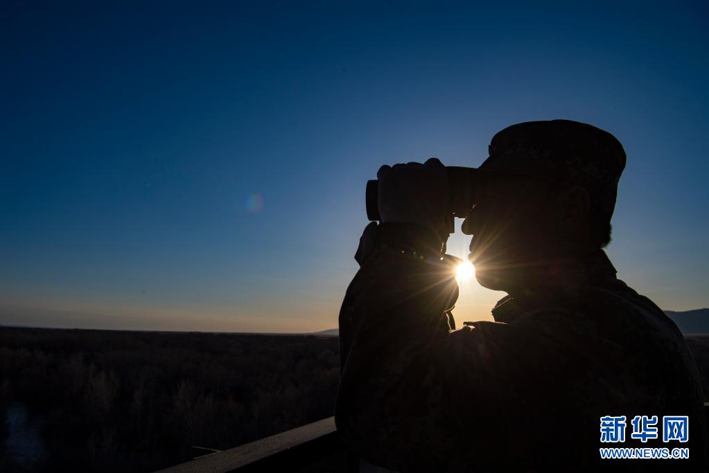 新疆生產(chǎn)建設(shè)兵團第10師185團職工馬軍武在瞭望塔上觀察管護轄區(qū)(4月9日攝)。