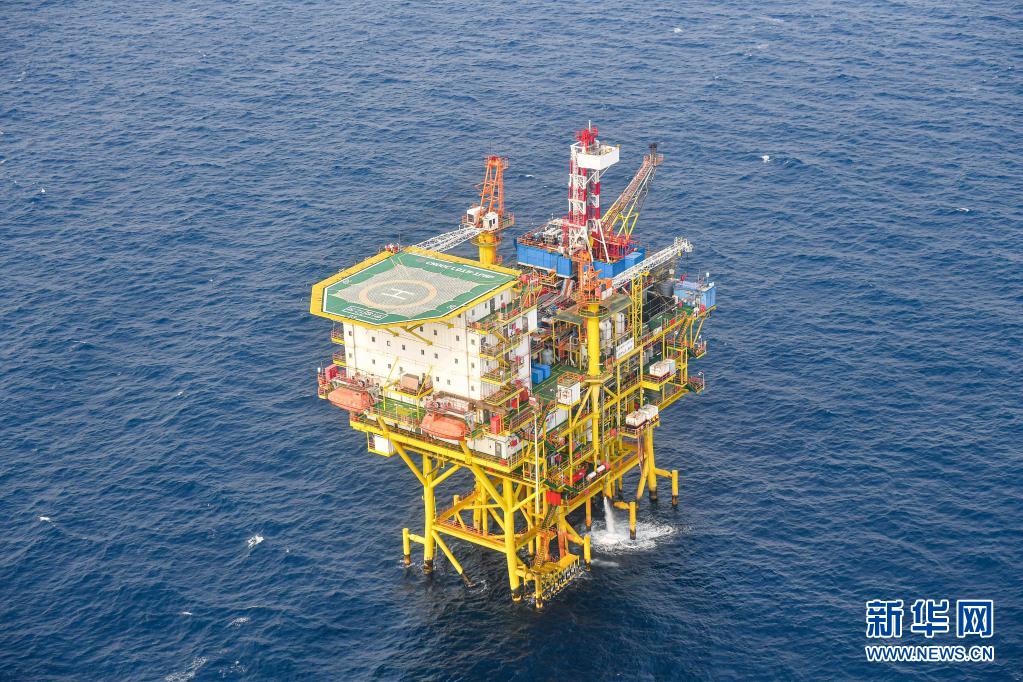 這是4月25日在南海北部海域拍攝的中國海油樂東15-1氣田。