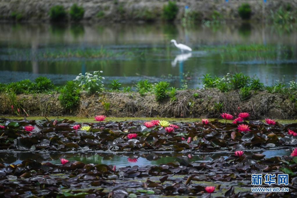 在東林鎮(zhèn)東方村,水田里種植的睡蓮盛開(kāi)(5月7日攝)。