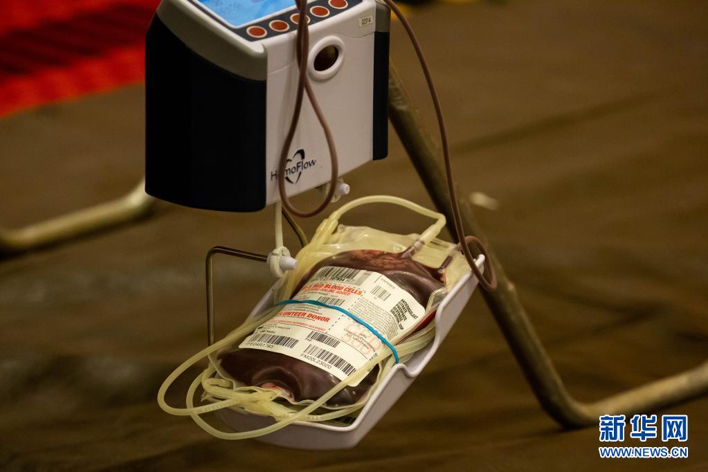 這是6月14日在美國紐約州長島地區(qū)的尤寧代爾拍攝的獻(xiàn)血志愿者在美國紐約血液中心舉行的獻(xiàn)血活動(dòng)上捐獻(xiàn)的血液。