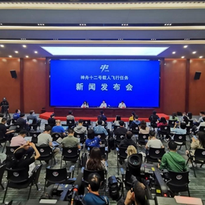 6月16日,神舟十二號載人飛行任務新聞發(fā)布會在酒泉衛(wèi)星發(fā)射中心召開(手機拍攝)。新華社記者 琚振華 攝