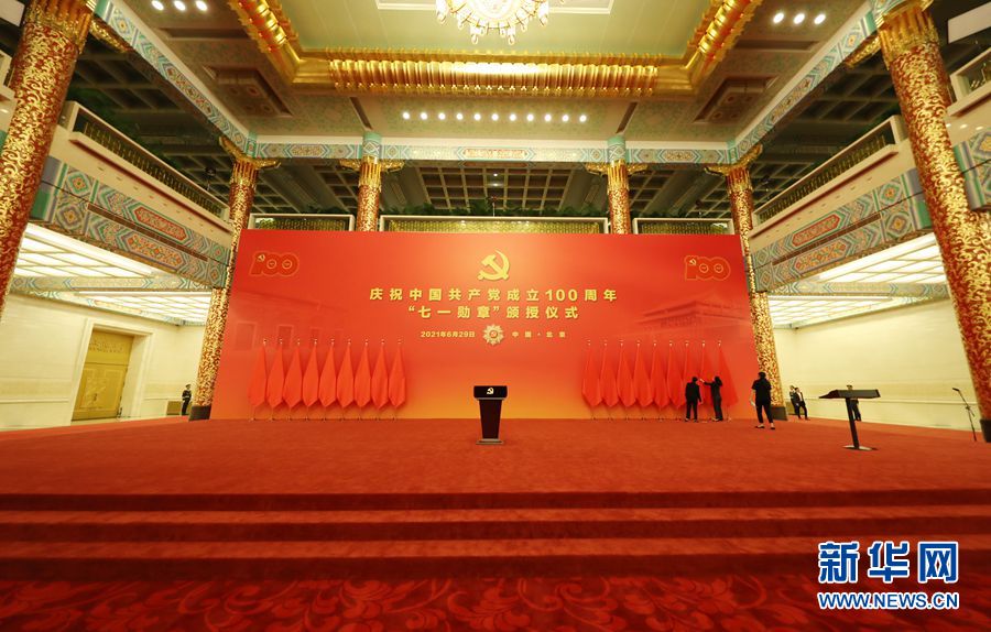 6月29日上午10時(shí),“七一勛章”頒授儀式將在人民大會堂隆重舉行。新華網(wǎng) 陳杰 攝