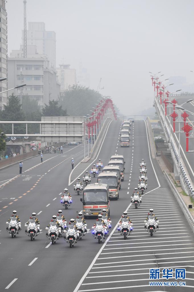 這是“七一勛章”獲得者集體乘坐禮賓車從住地出發(fā),由國賓護衛(wèi)隊護衛(wèi)前往人民大會堂。