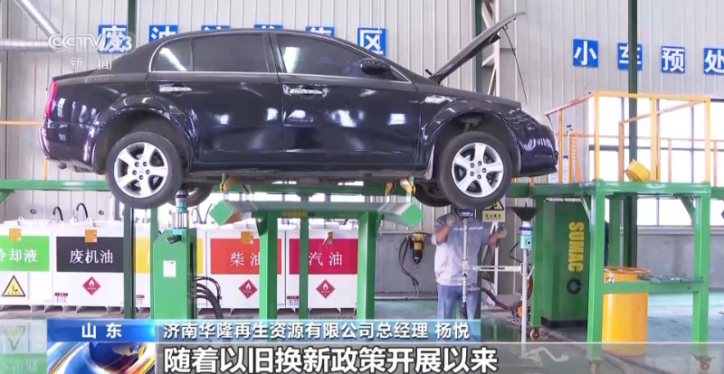 济南华隆再生资源有限公司总经理 杨悦:我们厂现在日处理报废机动车的能力达到了100台左右,报废汽车拆解完以后,这些废铁我们会进行打包处理,然后统一送到钢厂,作为炼钢的原材料进行使用。随着以旧换新政策开展以来,和后期补贴力度的加大,我们现在日收车量比去年同期增长了50%左右。