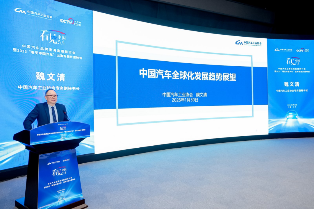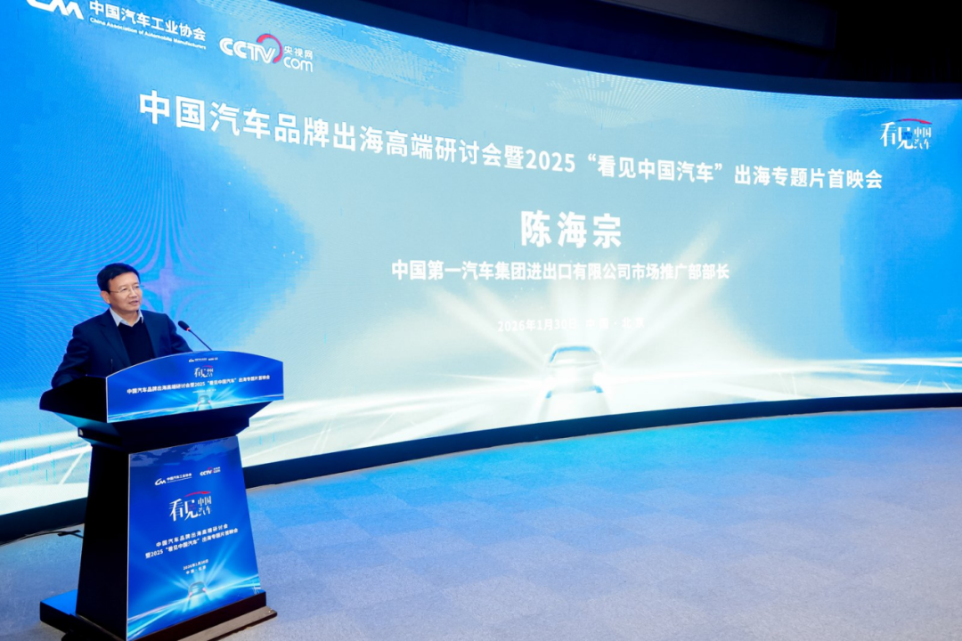 1月30日下午,中国汽车品牌出海高端研讨会暨“看见中国汽车”出海专题片首映会在北京举行。专题片紧扣中国汽车“扬帆出海”的主旋律,通过长安、奇瑞、比亚迪、北汽福田、一汽红旗五家具有代表性的品牌的出海故事,呈现出中国汽车走向世界的实践历程。