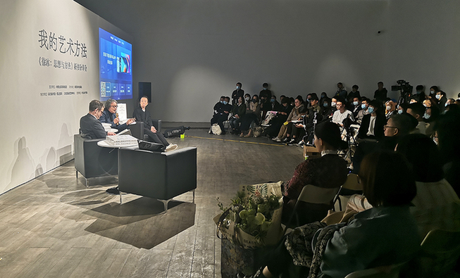 4月1日,“我的藝術(shù)方法——《徐冰:思想與方法》新書分享會”在北京798藝術(shù)區(qū)舉行。作為湖南美術(shù)出版社在北京圖書訂貨會的重要活動之一,主辦方特邀本書作者徐冰、UCCA尤倫斯當代藝術(shù)中心館長田霏宇、著名設(shè)計師孫華共同出席活動,暢聊徐冰的新書和藝術(shù),探討“徐冰:思想與方法”在呈現(xiàn)與觀看中的多重經(jīng)驗。