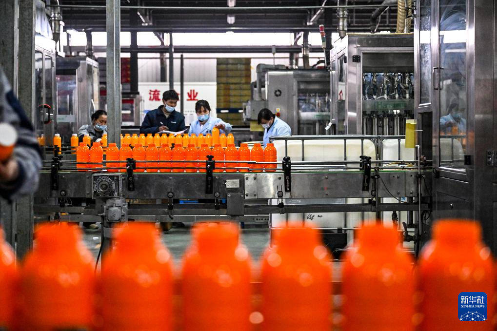 2月24日,在河南省商丘市睢阳区一家农资生产企业,工人在除草剂灌装生产线上忙碌。