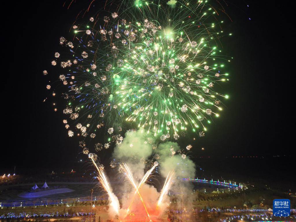 2月5日,在甘肃省酒泉市阿克塞哈萨克族自治县举行的“多彩阿克塞、好客哈萨克”烟花秀上,市民在焰火盛宴中度过美好的元宵之夜。