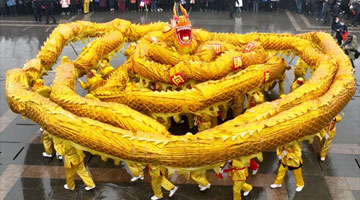 这是2月12日在美国纽约拍摄的新春大游行文化节上的舞龙表演。