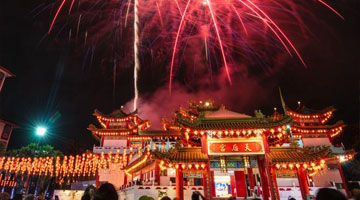 2月12日,在美国纽约,中国河北“文武沧州,运河古城”主题花车参加新春大游行文化节。