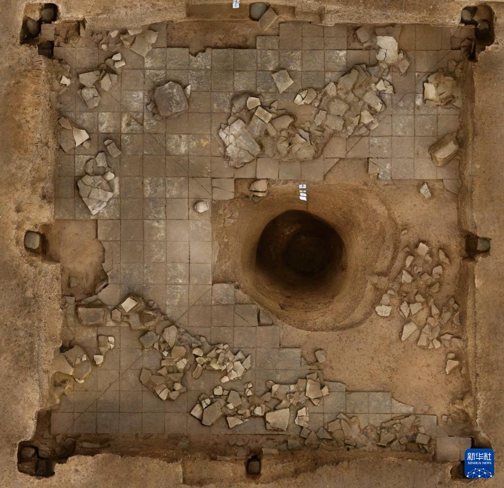 甘肃礼县四角坪遗址中心高台与附属建筑发掘全景(资料照片)。