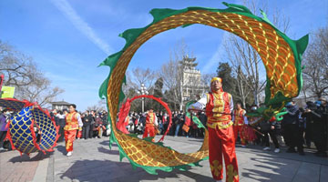2月22日,在西藏博物馆,“堆谐”舞蹈演员向观众谢幕。
