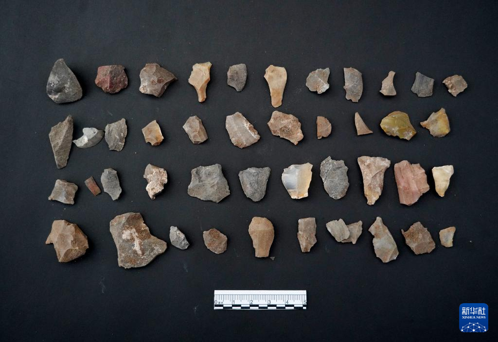 河北尚义县四台新石器时代遗址出土的石片及刮削器(资料照片)。