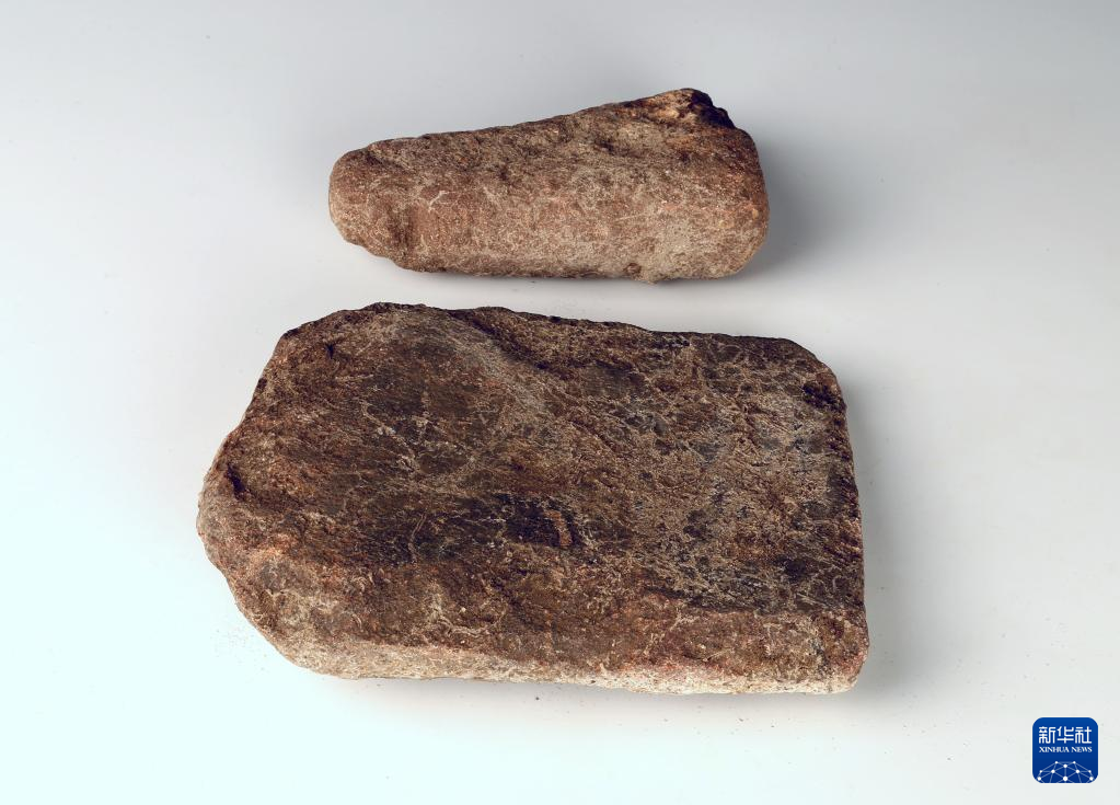 河北尚义县四台新石器时代遗址出土的磨杵与盘(资料照片)。