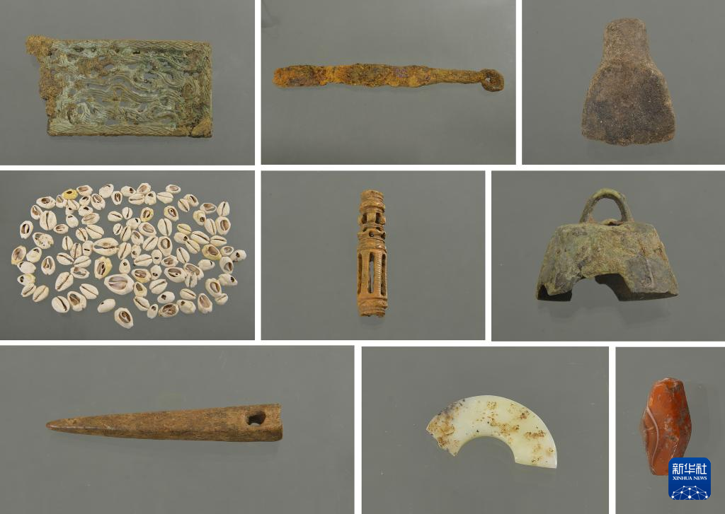 云南昆明市河泊所青铜时代遗址出土的部分小件器物(拼版照片)。