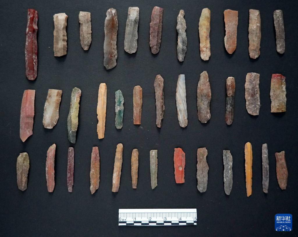 河北尚义县四台新石器时代遗址出土的细石叶(资料照片)。
