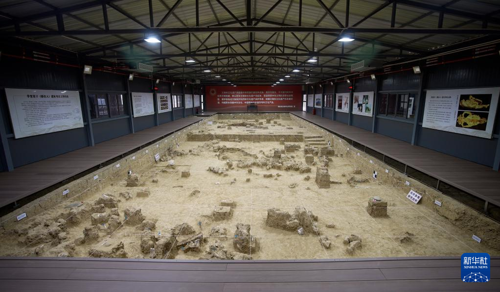 这是湖北十堰市学堂梁子(郧县人)旧石器时代遗址考古方舱内景(资料照片)。