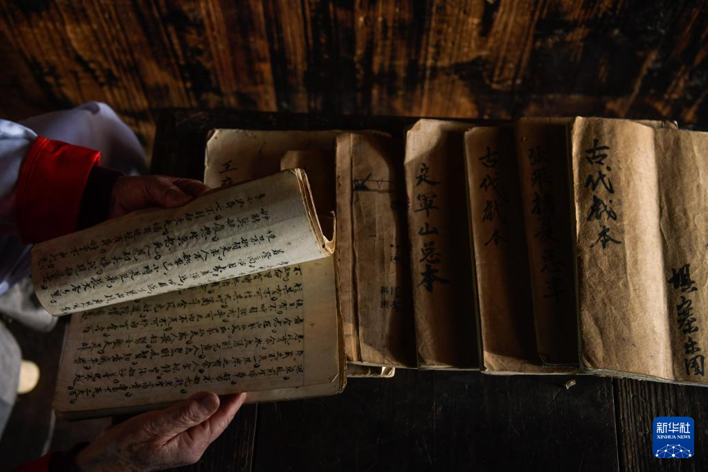 这是2月26日在贵州省天柱县凤城街道拍摄的侗戏古戏本。