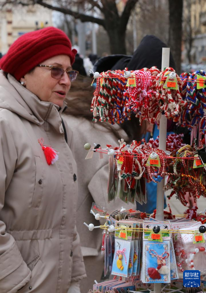 3月1日,在保加利亚首都索非亚,市民选购“三月花”。