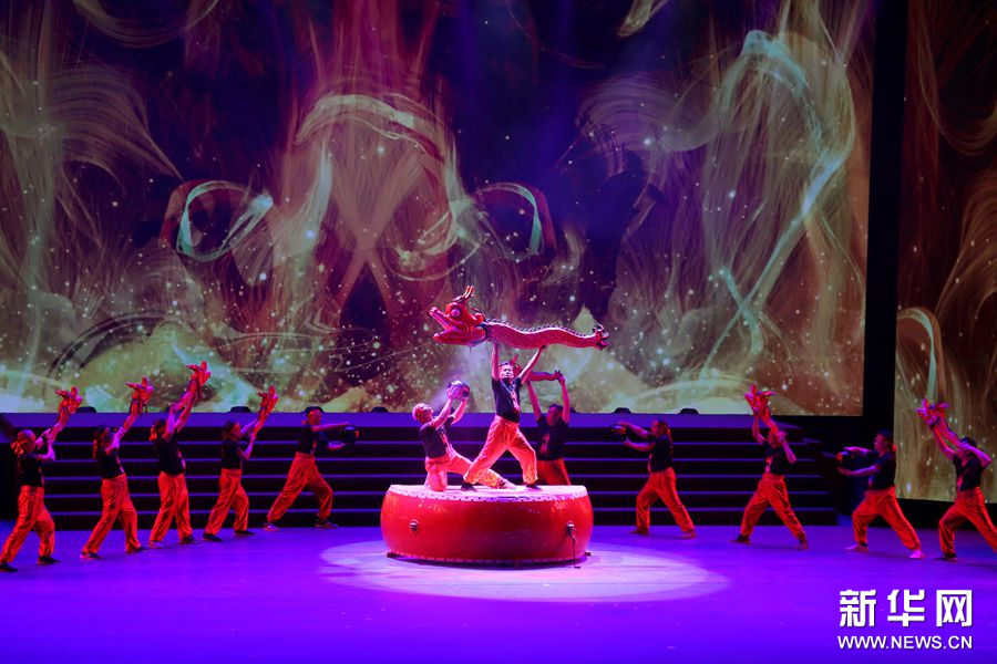 3月23日,“2023非遗品牌大会”在广州市开幕。当晚,“非遗之夜”展演在广州市文化馆新馆群星剧场上演。此节目为传统舞蹈《醉龙》。新华网 邢贺扬摄pagebreak