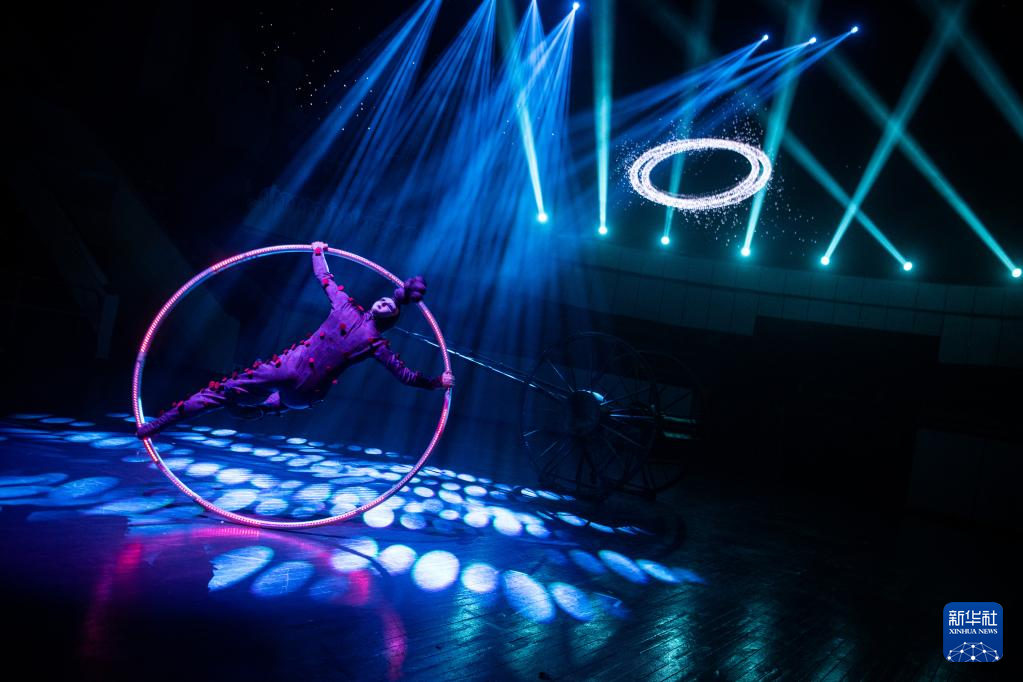 3月24日,演员在第十四届武汉国际杂技艺术节开幕式上表演《英雄之城》。