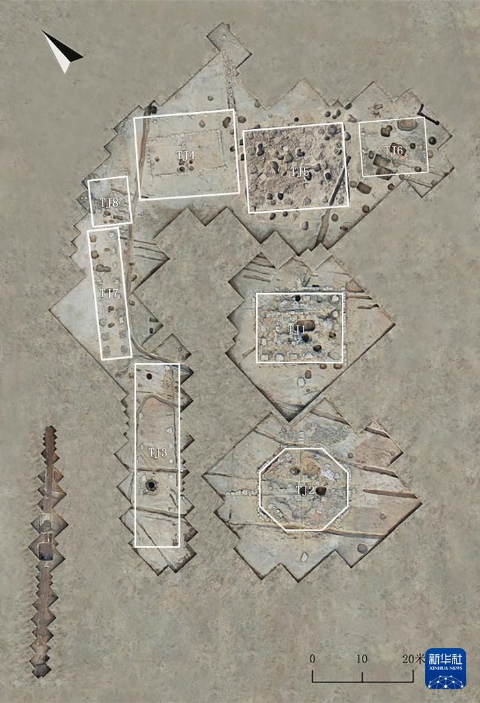 河南偃师二里头都邑中心区西南路口的新发现航拍示意图(资料照片)。