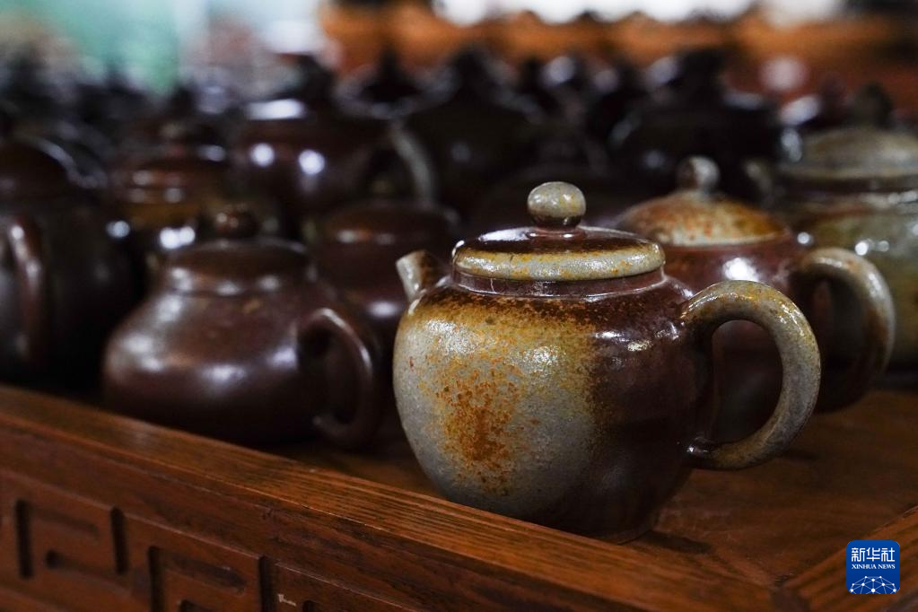 这是4月11日在广西钦州市承坭斋拍摄的坭兴陶制品。