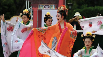4月16日,俄罗斯族群众欢聚一堂,庆祝巴斯克节。