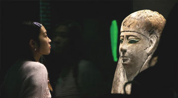 4月22日,一名小朋友在吉林省图书馆前的“换书大集”挑选图书。