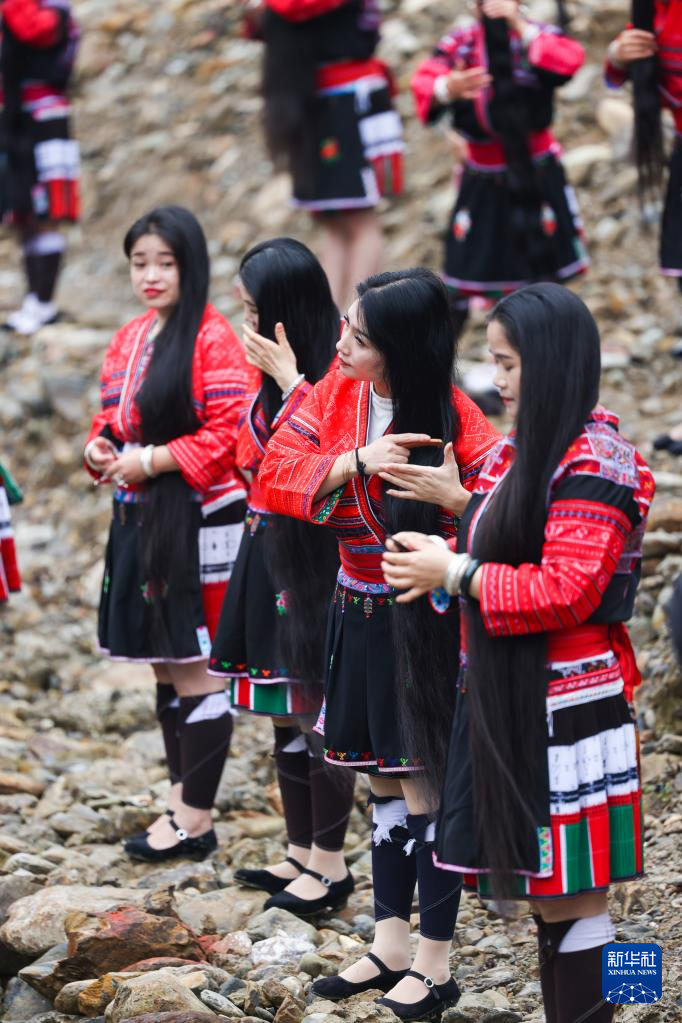 当日是农历三月初三,广西桂林市龙胜各族自治县黄洛瑶寨举行“三月三龙脊长发节”活动,吸引游客前来参观游览。黄洛瑶寨的红瑶族妇女有世代相传的蓄发习俗,平均头发长度达1.7米,最长的有2.72米。