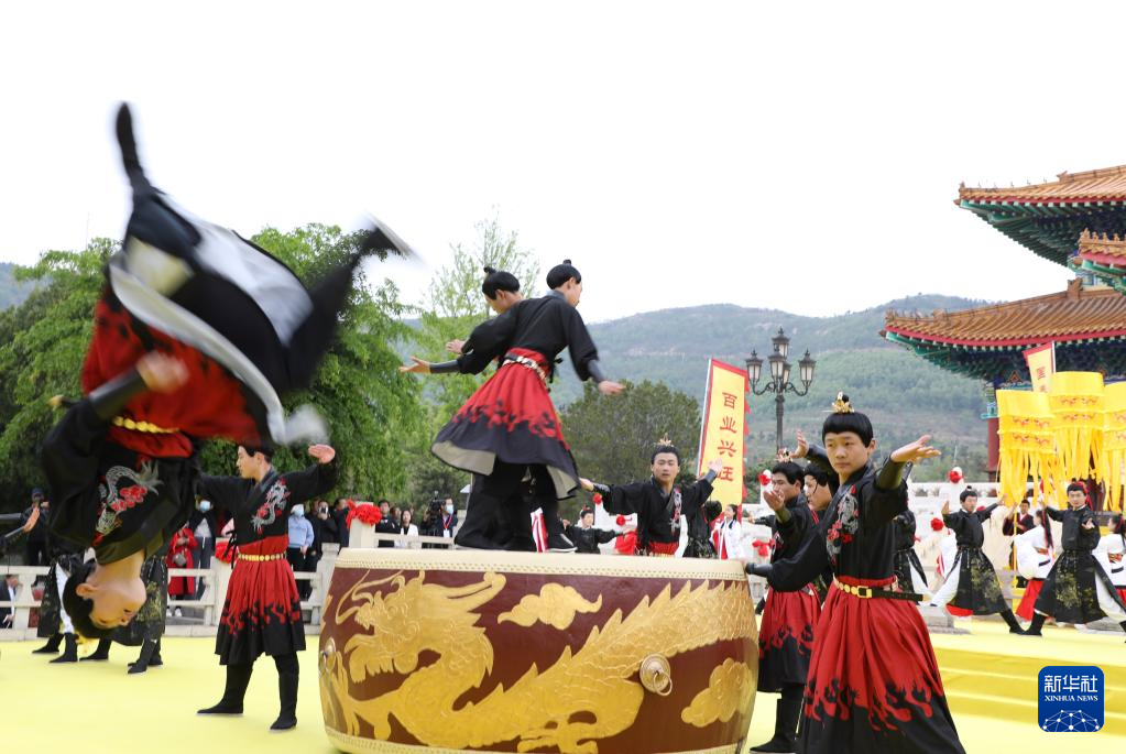 4月25日,第九届沂山文化节开幕式暨东镇沂山祀山大典在山东省潍坊市临朐县沂山风景区举行。演员们现场进行《海岱雄风》《岳镇海渎》《天下沂山》等沉浸式表演,让广大游客感受非遗祭仪的魅力,弘扬传统文化。