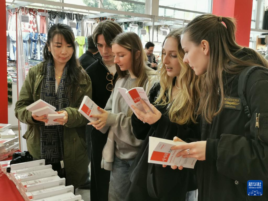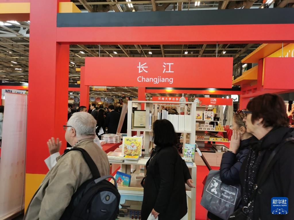 4月27日,观众在法国巴黎博览会中华文化主题展区浏览《中国关键词》系列图书。新华社记者 徐永春 摄