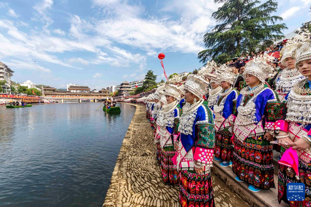 “五一”小长假期间,贵州省黔东南苗族侗族自治州台江县迎来一年一度的苗族姊妹节。颇具特色的盛装游演、民族歌舞表演、苗家长桌宴、民族民间工艺品展示等系列活动吸引众多游客前来观赏游玩。