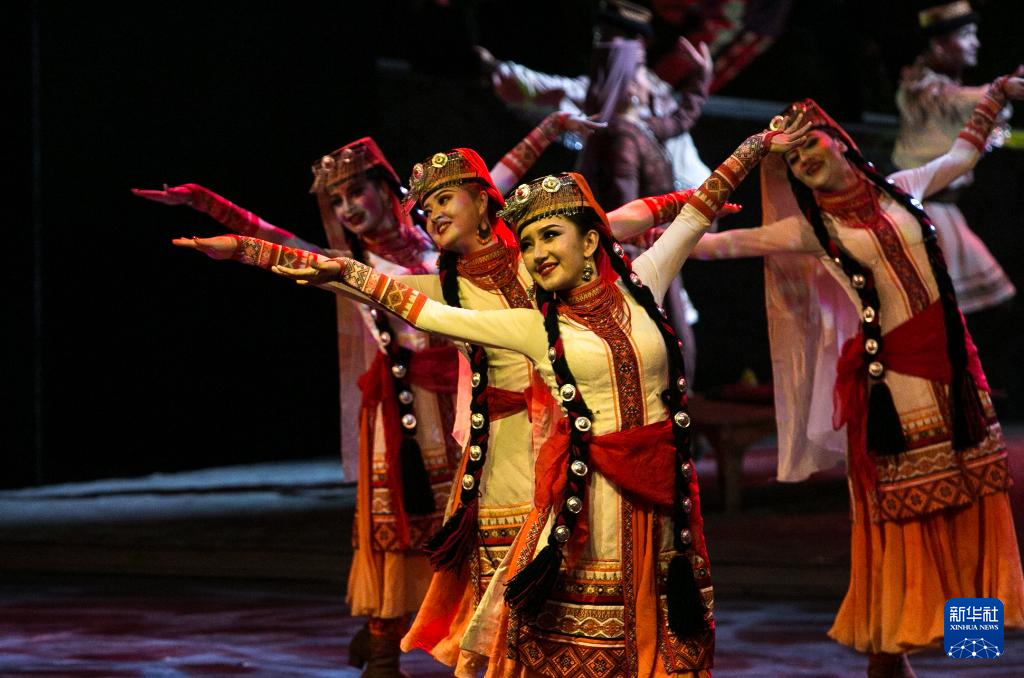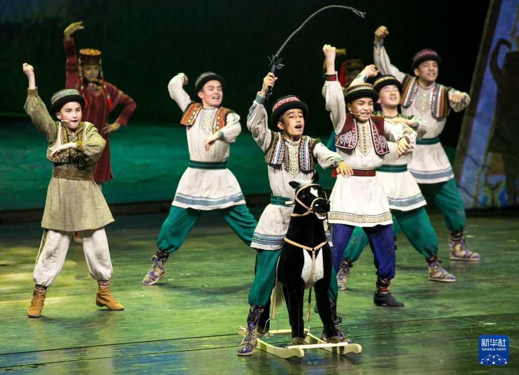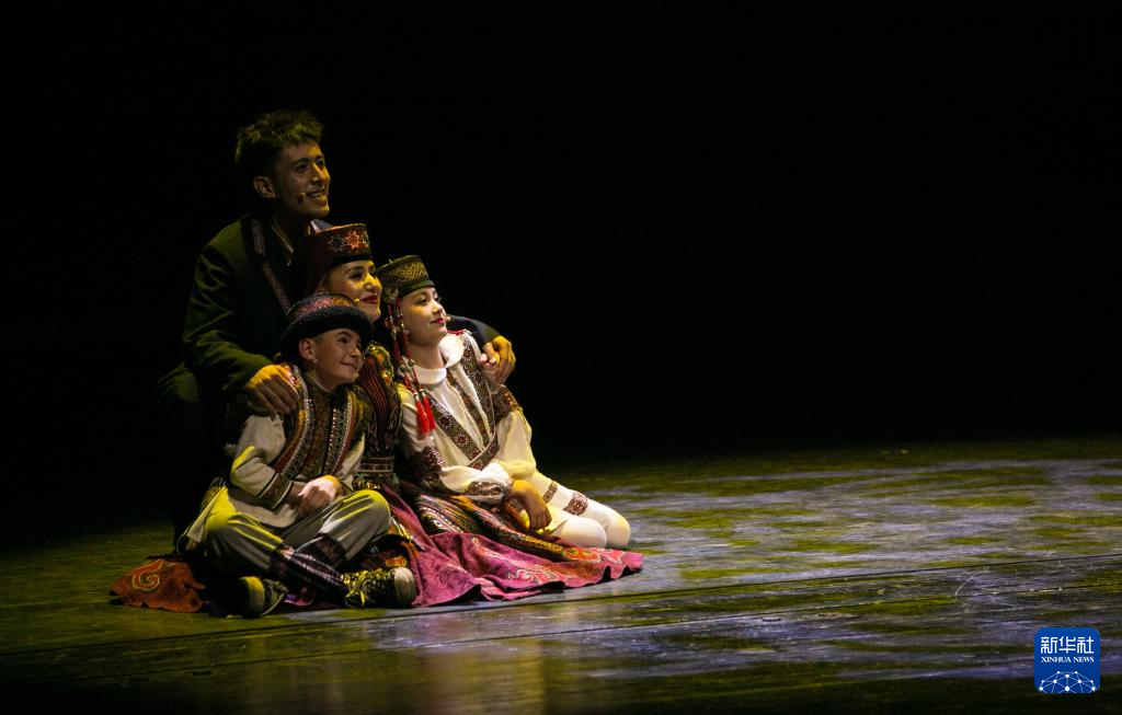 4月29日,在北京保利剧院,演员在音乐剧《拉齐尼·巴依卡》第一幕《帕米尔少年》中表演。