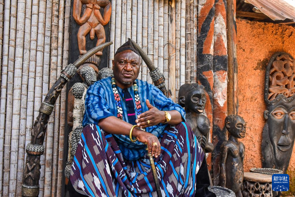 这是4月13日在喀麦隆西部大区拍摄的巴图方酋邦宫殿内的木制器物。