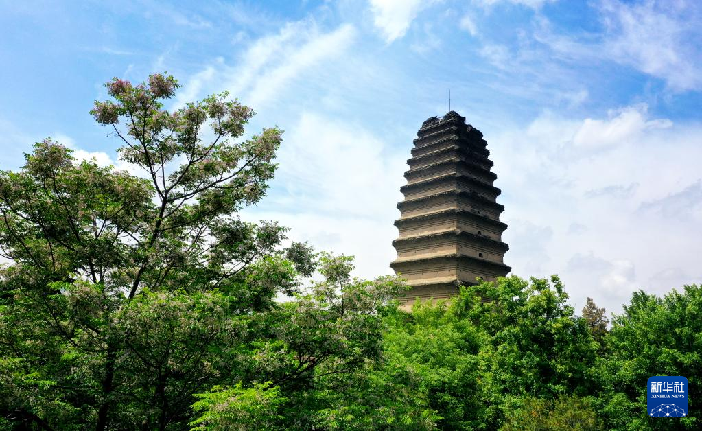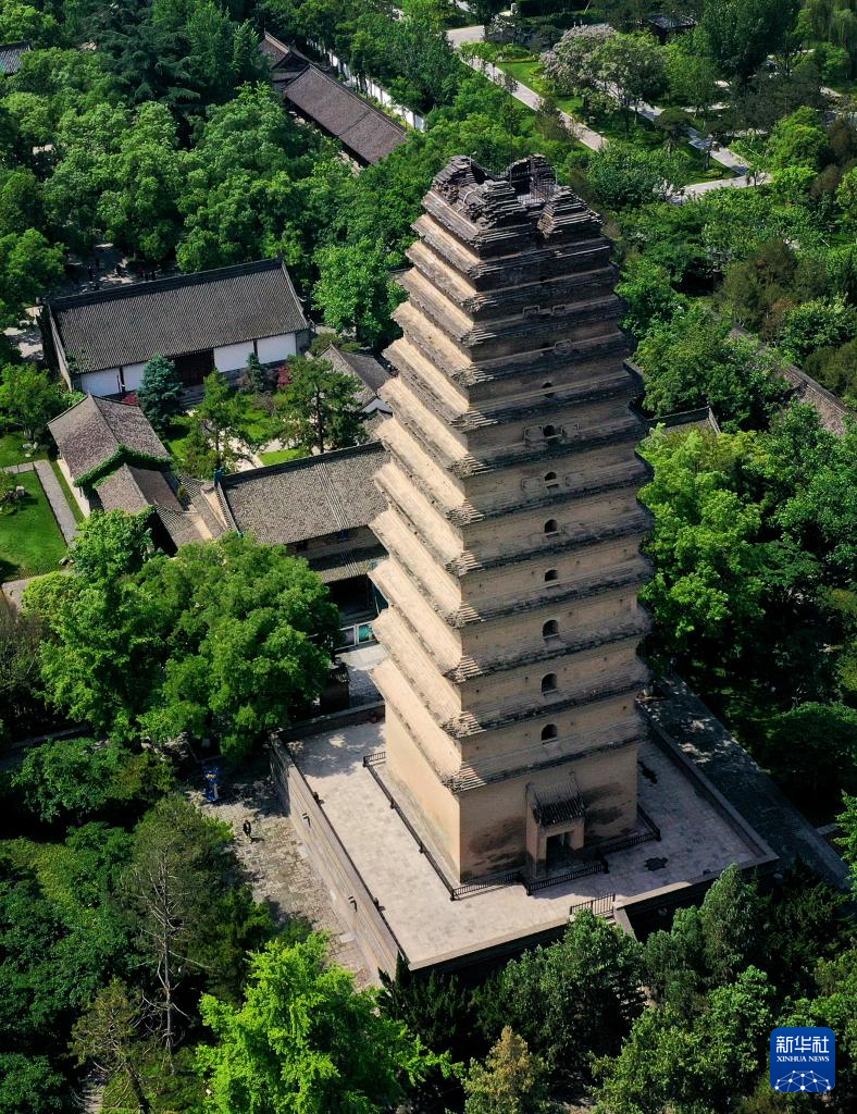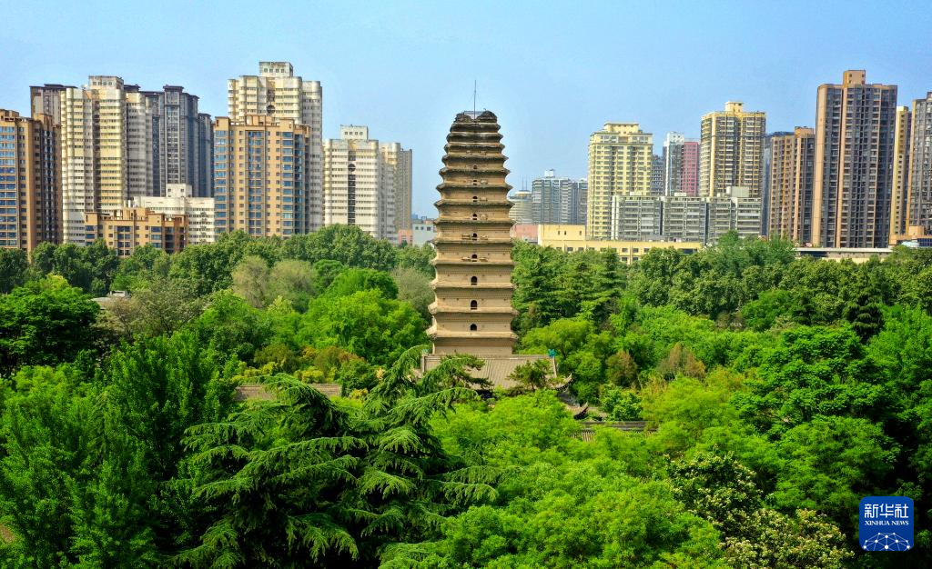 西安小雁塔(5月8日摄,无人机照片)。