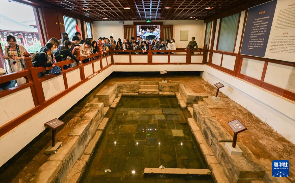 游客在西安华清宫景区星辰汤参观游览(5月5日摄)。