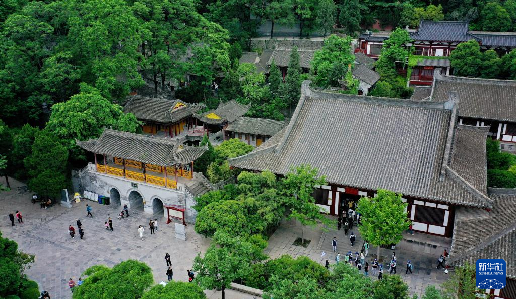 游客在西安华清宫景区内游览参观(5月5日摄,无人机照片)。