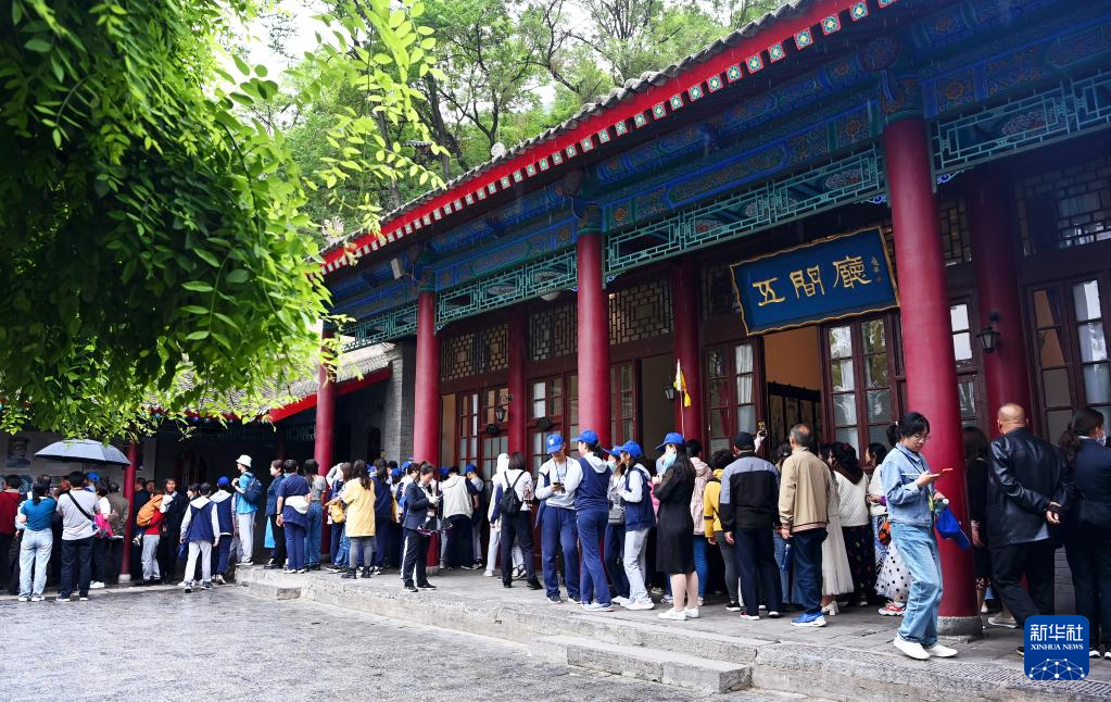 游客在西安华清宫景区“西安事变”旧址参观游览(5月5日摄)。