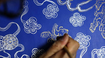 范发生在安徽宣纸的基础上,通过制熟、砑光、染色、填粉、施蜡、挣平等工序处理,再以金泥、银泥等描画花纹,制作出华贵精美的加工纸,让这一文房珍宝再放异彩。新华网发(解琛 摄)