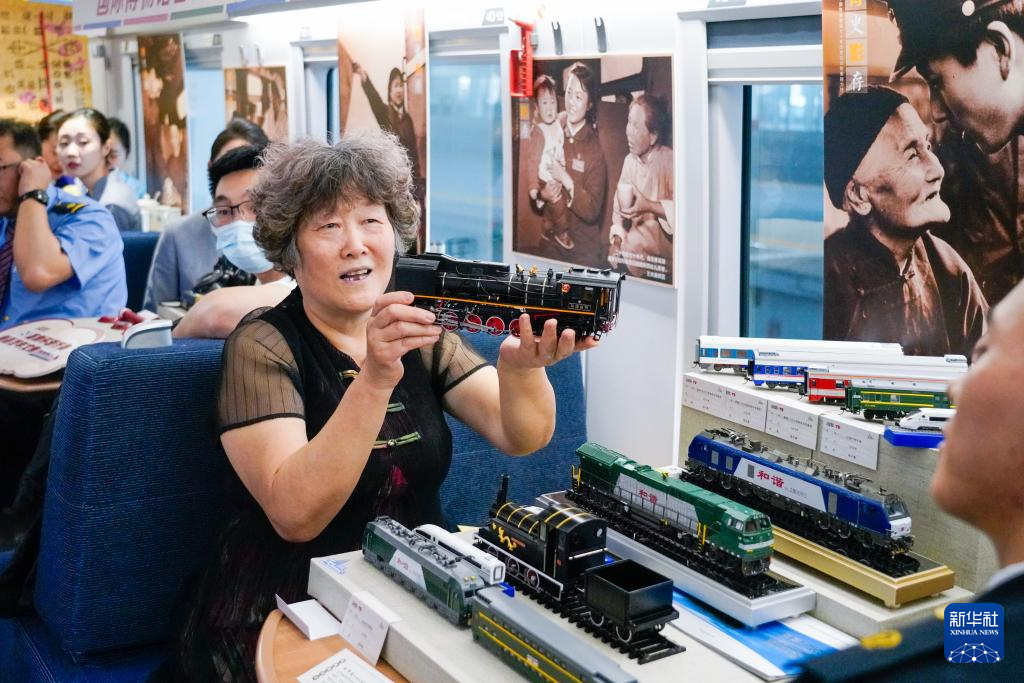 在国际博物馆日即将到来之际,青岛客运段和胶济铁路青岛博物馆联合在G6955次环线列车上举办了“行走的高铁博物馆”活动。五百多件反映胶济铁路百年发展史的展品,吸引了旅客们的目光,也让人们感受到当今出行的便利。